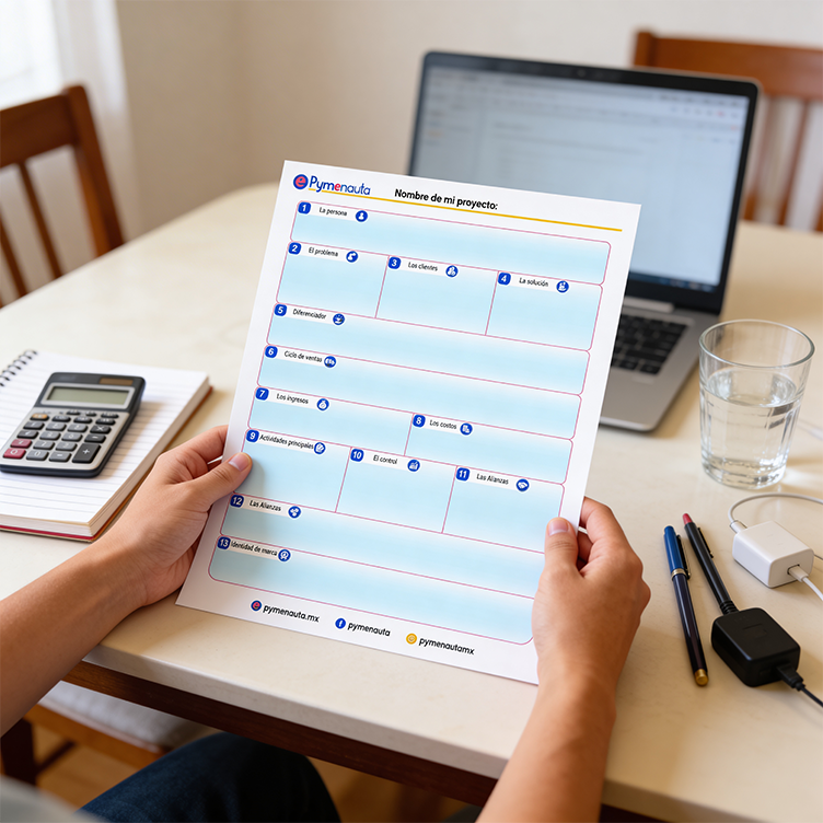 El Mapa Emprendedor es una plantilla descargable y editable creada por Pymenauta que te ayuda a ordenar tu idea o negocio, entender cómo funciona y tomar decisiones con mayor claridad. Está pensada para personas que emprenden por su cuenta o tienen una micro o pequeña empresa y necesitan una guía sencilla, sin tecnicismos, para avanzar con más certeza.